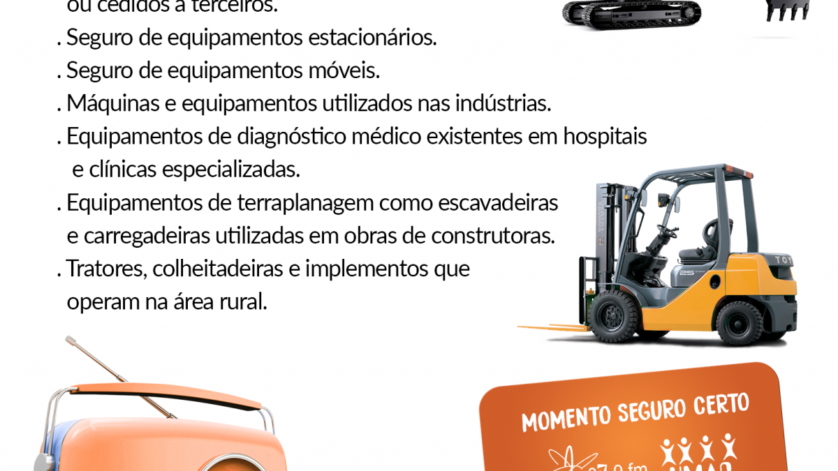 Existem coberturas específicas para cada segmento. Seja um equipamento utilizado em um canteiro de obras, na indústria ou em um escritório, é importante que eles estejam em pleno funcionamento para que você tenha tranquilidade e segurança para se preocupar com o que realmente lhe interessa, seus negócios.